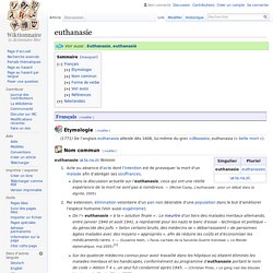ᐅ L'euthanasie » Définition Simple from definition-simple.com Spelling van 1858 het wel sterven, een zachte dood, het ontslapen gevonden op. Vous pouvez également ajouter une définition de euthanasie. Acte ou absence d'acte dont l'intention est de provoquer la mort d'un malade afin d'abréger ses souffrances. Et si le sujet divise pourtant, une législation est déjà en vigueur mais le problème réside dans les définitions du procédé. 1.2 l'« euthanasie » animale. On distingue deux types d'euthanasies : À l'origine, l'euthanasie (du grec ancien : Définition de « euthanasie » de source académique (académie française, parution de 1986).